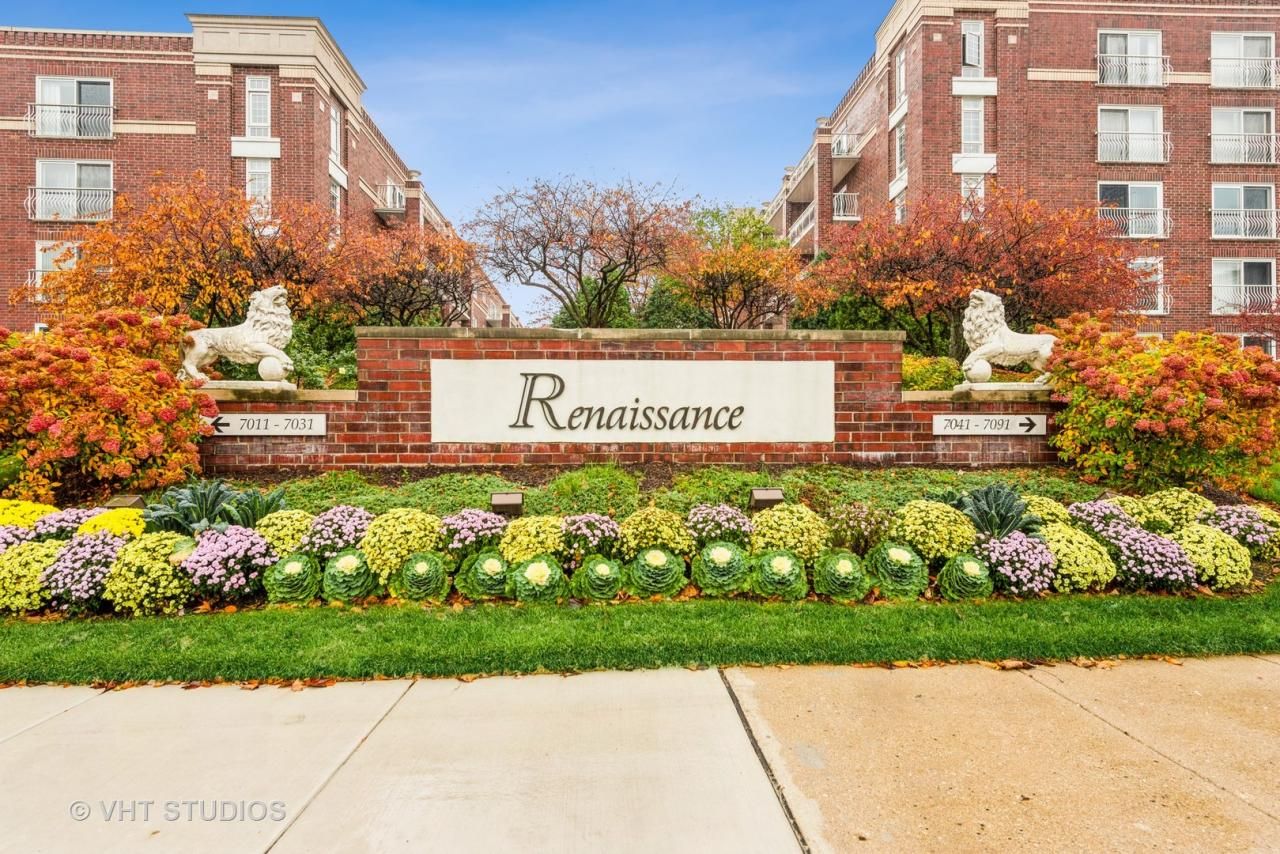 Remarkable location on the top floor overlooking an enchanting courtyard with statues and fountain. Very well maintained building inside and out with an elevator to the 5th floor. Open spacious rooms invite you in. For the buyer with a talent for decorating and design this unit offers lots of potential. Large living and dining combo opens to a lovely large balcony. Eat-in kitchen also opens to the living space as well. Large bedroom and a walk-in closet. The bath features a closet with stackable washer and dryer. Radiant heated floors for comfort are included in your very reasonable association fee. You pay for electric and cable. Heated garage (#22) space plus plenty of guest parking. Pioneer park, shopping and access to the express are all so convenient. This unit is an estate and being sold as is. Make this your home today!