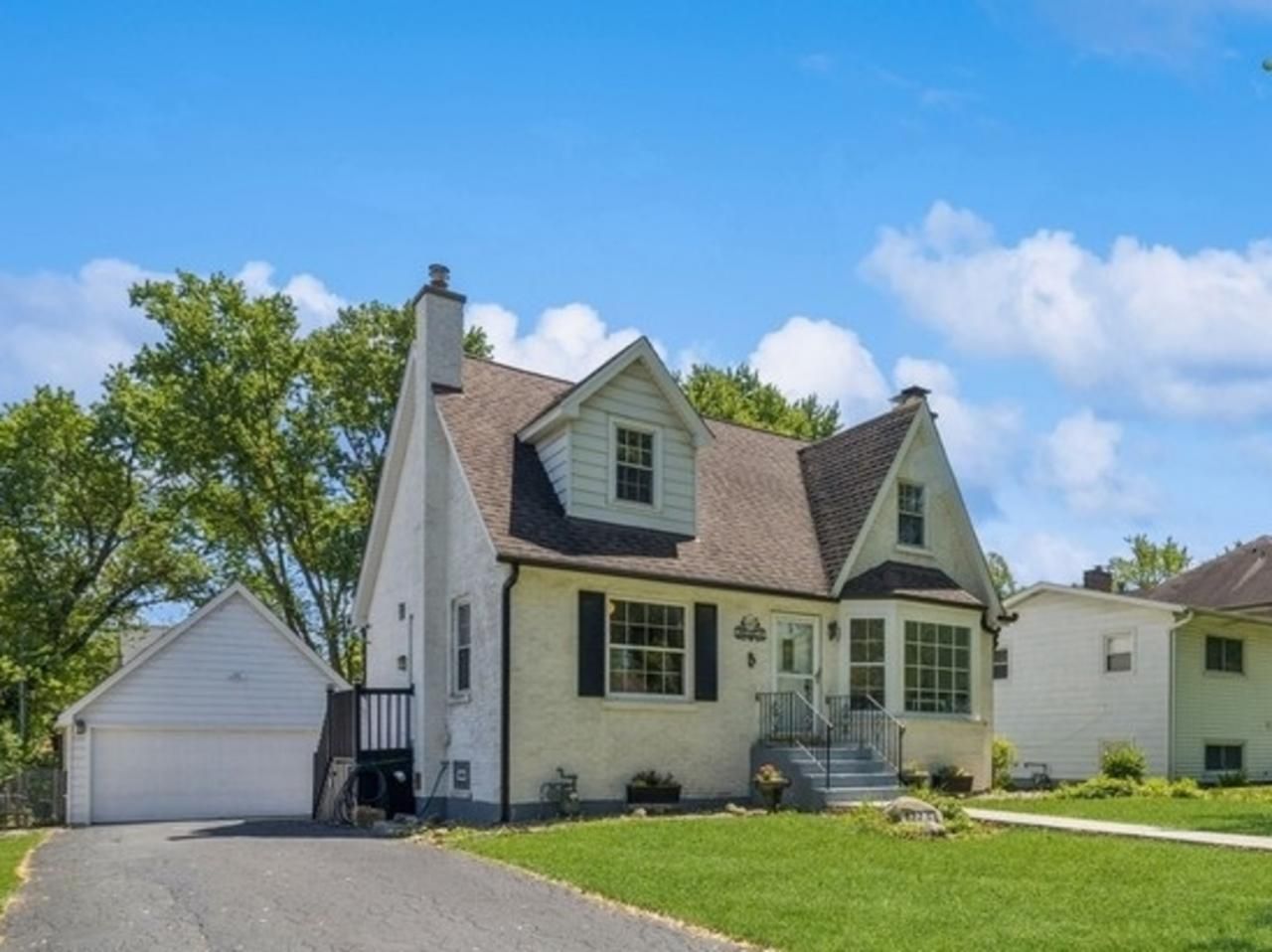 From a time well treasured. Lovely vintage cape cod with a quarter acre of enchanting gardens. Coved ceilings frame the living and dining room. Dining area slider opens to a large sun roof covered deck. Enjoy the charm of the 50's stone fireplace in the living room and bayed window. Sparkling kitchen with planter window, slate floors, custom counters, and new dishwasher and deep sink. Stainless steel appliances. Versatile first floor bedroom and upgraded full bath with bidet. Refinished oak floors. Spacious second floor primary bedroom with all the beauty of dormered ceiling windows. 2nd bedroom has dormered windows as well. Redone upstairs bath with bidet and with customized privacy blocked windows. Finished basement with new vinyl floor and second fireplace. Insulated sound room and work shop/utility room with a walkup stairs to backyard. Recently replaced gutters and soffits.Oversized peaked garage with attic storage. New furnce and a/c in 2023. Newer washer and dryer. Privacy fenced quarter acre filled with perrienals strawberries, grape vine and custom brick and stone firepit and raised garden beds. Great location in Palatine with access to both Palatine and West Arlington Heights Metra stations. If you love the charactor and charm of a vintage homes you must see this treasure!